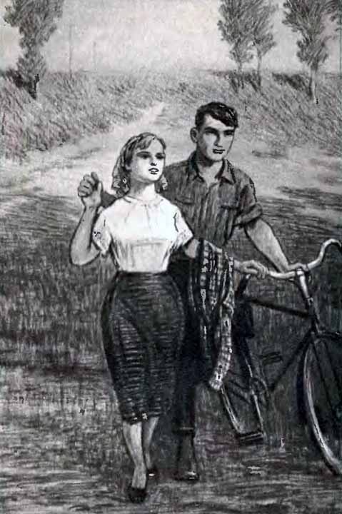 Он помчал ее так, что дух захватывало. Сидя на раме между его руками, слыша его дыхание, она была так счастлива, что ей хотелось петь, смеяться, кричать от радости. А он сломя голову несся по дороге, слетал с одного холма, птицей взлетал на другой, нажимая на педали с таким азартом, как будто решил прокатить ее вокруг света…