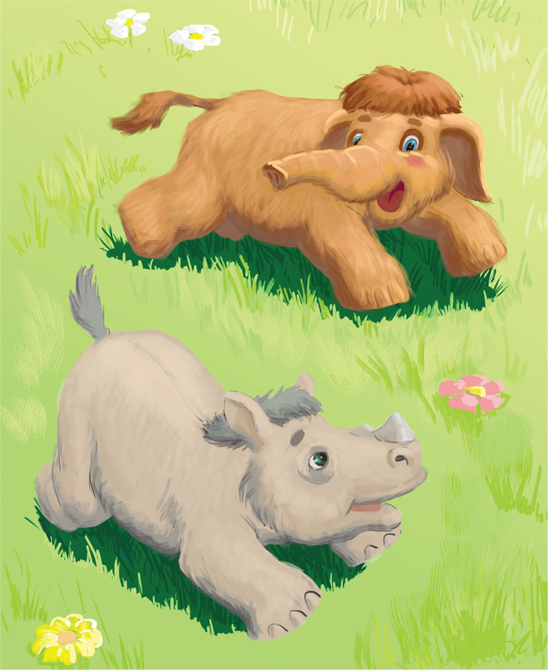 Лето летело, как всегда, быстро. Малышка росла и набиралась ума-разума. Был у нее и друг, шерстистый носорожек Дуду, родители которого паслись недалеко от стада мамонтов. Такое необычное имя ему дали за его странную привычку: когда он собирался бежать, то всегда выкрикивал своеобразный боевой клич: – «Ду-ду, ду-ду!» Со временем, это забавное «Ду-ду» так и пристало к нему. Дуду каждое утро наведывался к нашей малышке, и они вместе отправлялись изучать окрестные места, пока дотошные мамы не возвращали их назад.