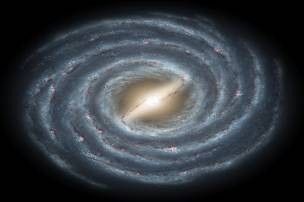Наша Галактика под названием «Млечный путь», представляет собой огромную спиралеобразную эллипсовидную систему.Ее ядро, состоящее из плотного скопления звезд, в настоящее время с Земли мы наблюдать не можем, так как Солнце и окружающие его планеты сейчас двигаются в той части Галактики, где ядро закрыто межзвездной пылевой туманностью. Только через несколько миллионов лет Земля и Солнце выйдут на «открытое» пространство и ученые смогут напрямую наблюдать центр нашей Галактики, хотя уже сейчас они рассчитали, что этот центр напоминает диск с диаметром 100 тысяч световых лет и толщиной более одной тысячи световых лет. Здесь стоит напомнить, что световым годом считается расстояние, которое пролетел бы космический корабль за один земной год, если бы он двигался со скоростью света в 300 тысяч километров в секунду. То есть световой год равен 9463 млрд. км.