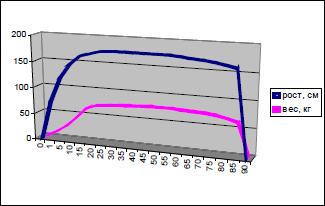 Процесс биологического развития человека от его рождения до самой смерти происходит волнообразно. Если мы построим зависимость роста или веса некоего усредненного человека от его возраста, то получим следующие кривые.