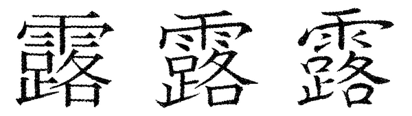С иероглифом (молния) хочется сопоставить знак , изображающий дракона. Обращает на себя внимание как визуальная, так и смысловая схожесть обеих этих картинок: оба знака по смыслу «огнеопасны» и стоят (тацу) над полем (та). Иероглиф «Дракон» красив сам по себе и может вызвать множество ассоциаций, причём лишённых каких-либо оглядок на «историческую достоверность» (его происхождение), ведь если бы не реформаторская деятельность со стороны соответствующих японских инстанций, то нам пришлось бы запомнить значительно более сложное с точки зрения графики изображение . Тем не менее устаревший иероглиф встречается сегодня довольно часто, особенно в японских фамилиях. Так, фамилия знаменитого японского писателя Акутагава Рюноскэ [457] записывается следующим образом: (акутагава рю:носукэ) [458] . Более того, сегодня сложилась такая ситуация, что оба иероглифа (и модернизированный, и устаревший) даже могут встретиться в одной фразе: - Акугатава Рюноскэ «Дракон» (фамилия-имя автора и название рассказа).