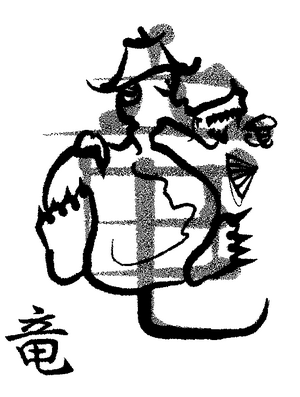 (дзё:сюби) - удача, успех, успешный результат (верх + головa + хвост -> не столько нос кверху и хвост трубой, сколько верхний исход).