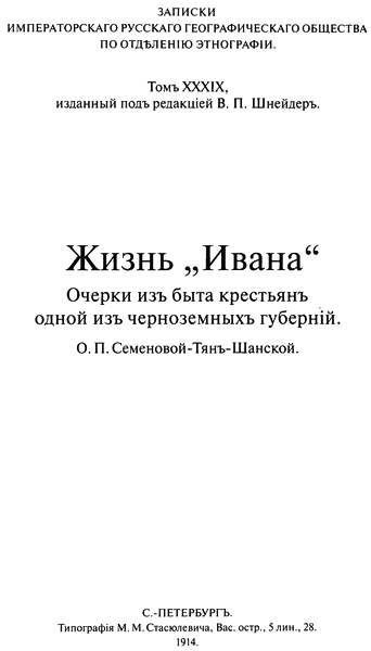 С годом выхода из печати «Жизни “Ивана”» не повезло. Вскоре разразилась Первая мировая война, и книга мало кем, кроме специалистов, была замечена, а после революции 1917 года о О.П. Семеновой-Тян-Шанской и ее труде надолго забыли. Лишь спустя восемьдесят один год после первого выхода в свет «Жизнь “Ивана”» была переиздана репринтным способом в Рязани, неподалеку от которой и расположена Гремячка — село, ставшее основным объектом исследования Ольги Петровны.