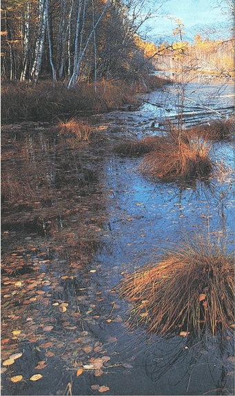А бывают и еще более опасные места на болотах — «окна» — лужицы чистой прозрачной воды на серо-зеленой поверхности. Нередко это целые озера — «водья» — шириной в несколько десятков метров. В жаркий летний день они невольно притягивают, манят утолить жажду, или хотя бы освежить искусанное комарами лицо. Но это — страшная ловушка: берега ее, лежащие вровень с водой, тонкая торфяная прослойка, а под ней — бездонная топь. Еще коварнее — «чаруса». Это «очаровательная полянка»: свежая зеленая трава, масса ярких цветов... Но горе тому путешественнику, который захочет собрать букет или просто отдохнуть на изумрудном ложе. Слабый травянистый покров, не выдерживающий даже белку, скрывает страшную пучину.