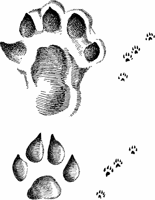 «Соболь – широколапый зверь, хорошо приспособленный к движению по снегу, – писал Раевский. – Из хищников он уступает в этом отношении, пожалуй, только росомахе – непревзойденной мастерице ходить, не проваливаясь. По первому впечатлению след соболя на снегу поражает своей несоразмерной с ростом зверька величиной – отдельно взятые отпечатки лап приближаются по размерам к лисьим. Это происходит от того, что конечности соболя зимой сильно опушены, что он не сжимает их в комок, а держит пальцы расправленными, и что пухлый снег под скачками соболя раздается дважды – задними ногами зверек попадает в следы передних. Отпечатки мохнатых лап соболя почти не имеют подробностей: от когтей следов не остается, оттиски подушечек пальцев различаются неясно. При снеге, в котором лапы соболя погружаются на глубину 3–5 см (самый обычный случай), размеры двойных отпечатков, т. е. передней и задней лап, поставленных в одно место, колеблются от 5 x 9 до 8 x 15 см, не считая поволоки и выволоки. Когда же соболь на сильных скачках или в неплотном снегу тонет на 10 см и глубже (до 15 см), то оттиски правых и левых конечностей сливаются в одну бесформенную ямку длиной до 25 см и шириной около 10 см. Отчетливые отпечатки лап соболя на припорошенном насте имеют в среднем размеры 4 x 6,5 см. Следы передних ног соболя на одну пятую меньше задних… Соболь ходит «чисто», т. е. не чертит ногами по снегу. Поволоки и выволоки появляются только когда соболю становится уже почти не под силу скакать из-за чересчур рассыпчатого снега, да еще когда соболь потихоньку подкрадывается по мягкому снегу шагом, стараясь делать как можно менее заметные движения.