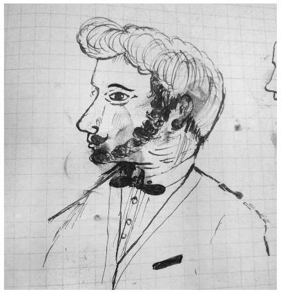 Портрет Пушкина, нарисованный Фёдором Абрамовым в 1937 году в школьной тетради. Публикуется впервые