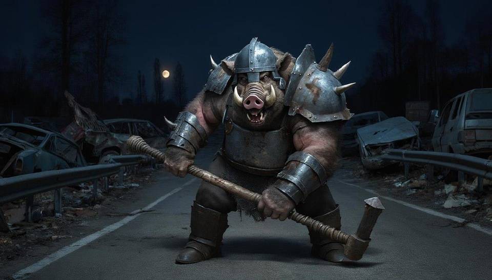 Воспользовавшись моментом, я высадил сплошной очередью все оставшиеся пули буквально в упор, в незащищённое место на пояснице свина. И в этом случае система не смогла повлиять выстрелы своим бесячим разбросом и потому всё попало, куда надо. Вот только много урона это не нанесло.