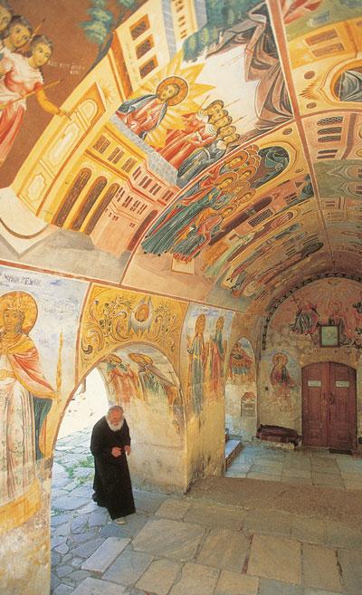 Фракийская гробница (IV–V вв. до н. э.) под Казанлыком украшена фресками.